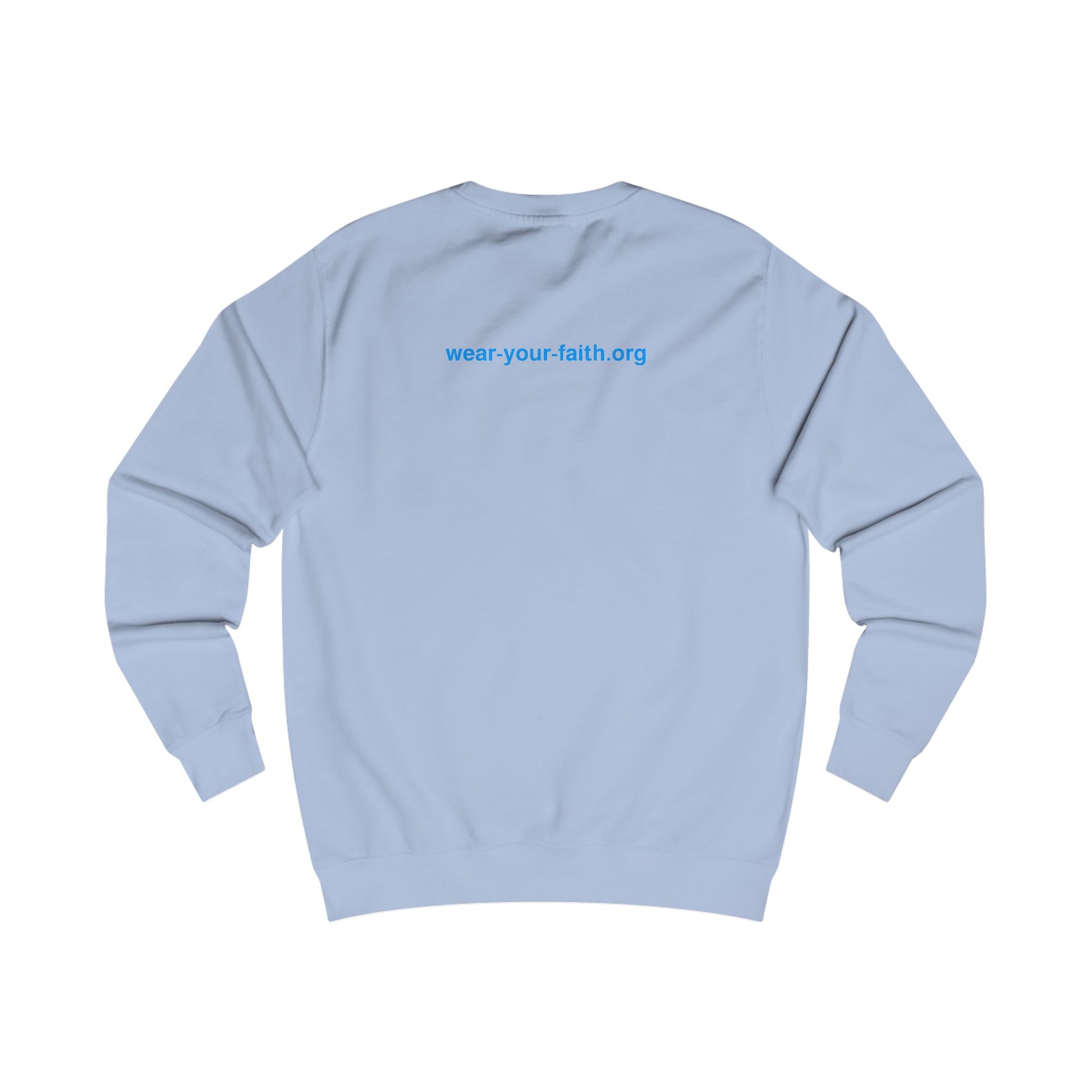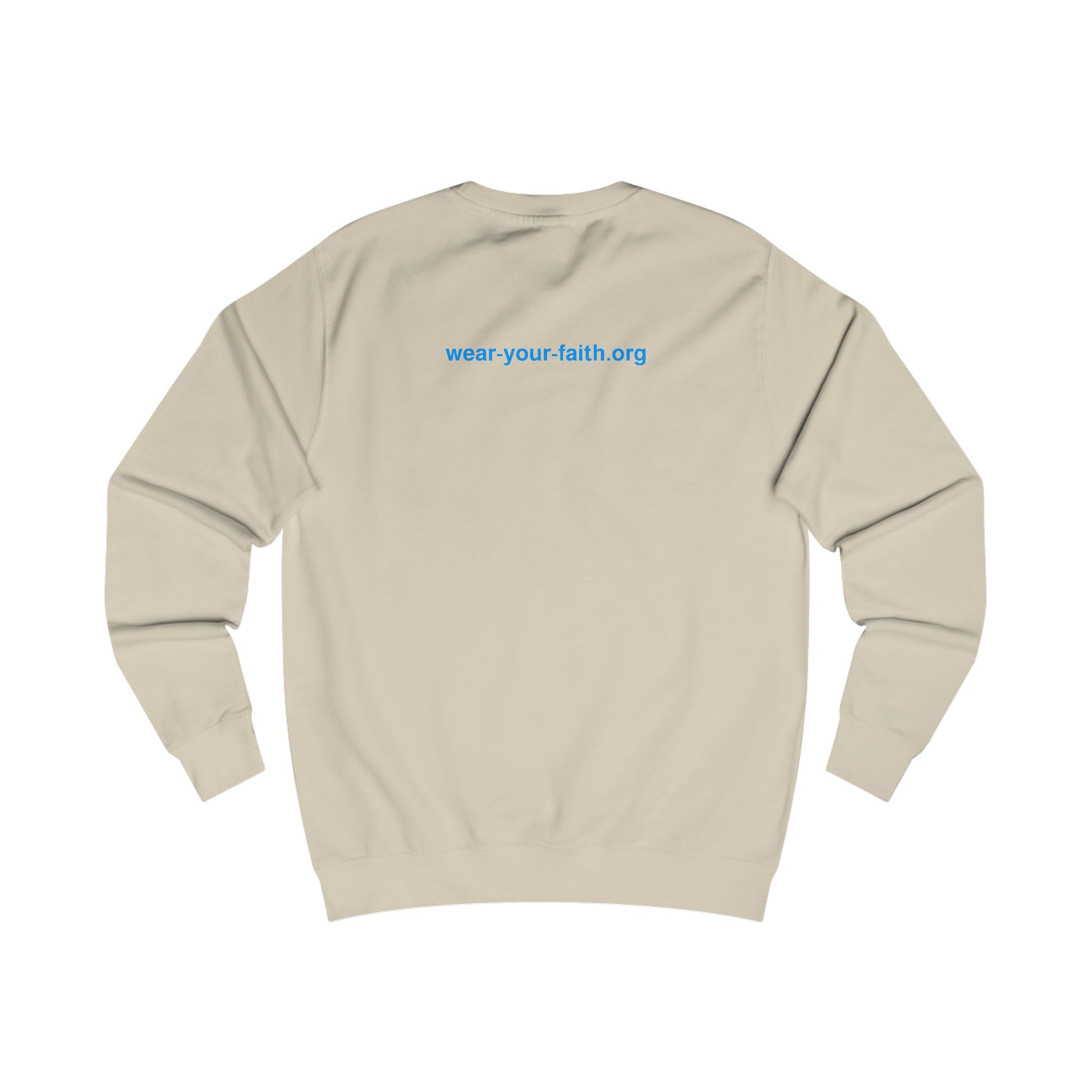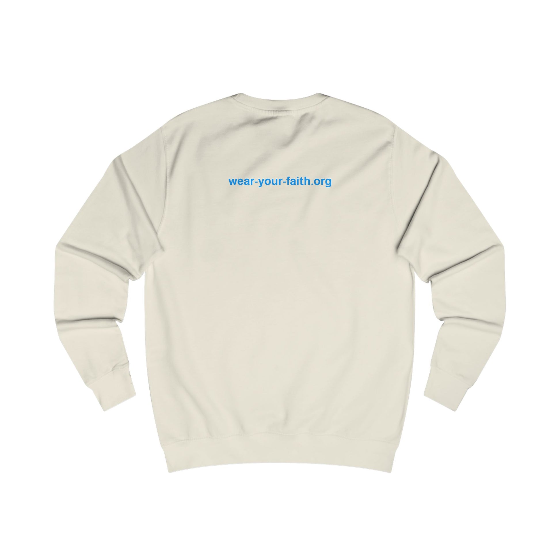 Help spread the word. A Beautiful logo - "Wear-Your-Faith" Logo, Unisex Sweatshirt. The unisex soft cotton sweatshirt is a seamless blend of comfort and style. The fiber is a blend of cotton and polyester. This combination makes for a prime printing surface. The seams have ribbed knitting. Durability is further assured by the inclusion of neck tape backing. As such, the collars are elastic and stretchy.